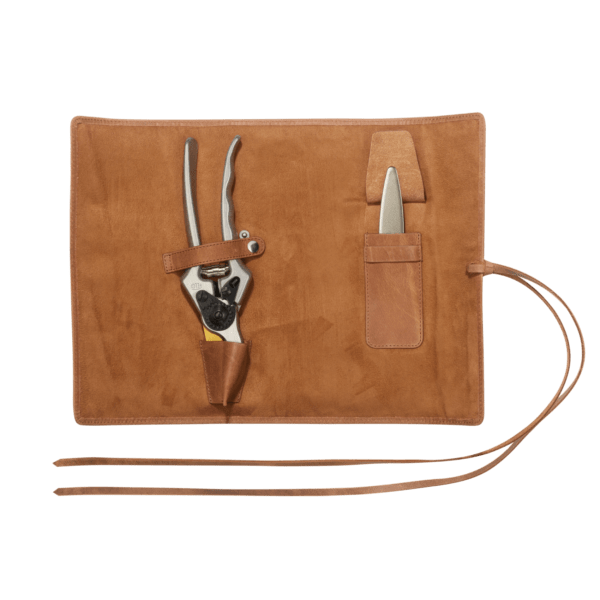 Bewaar je favoriete FELCO snoeischaar en FELCO 903 slijpsteen in stijl met deze eersteklas leren roltas. Ontworpen voor zowel rechts- als linkshandige snoeischaren met vaste aluminium handgrepen, biedt het een perfecte mix van bescherming en elegantie. Met een vakje voor je slijpsteen en een stevige riem met een knoopclip, blijft je gereedschap perfect op zijn plaats. Een leren veter sluit de etui elegant af en voegt een vleugje verfijning toe. Geleverd in een stijlvolle canvas tas, is deze roltas de perfecte metgezel voor FELCO liefhebbers die zowel snoeien als verfijning waarderen.
